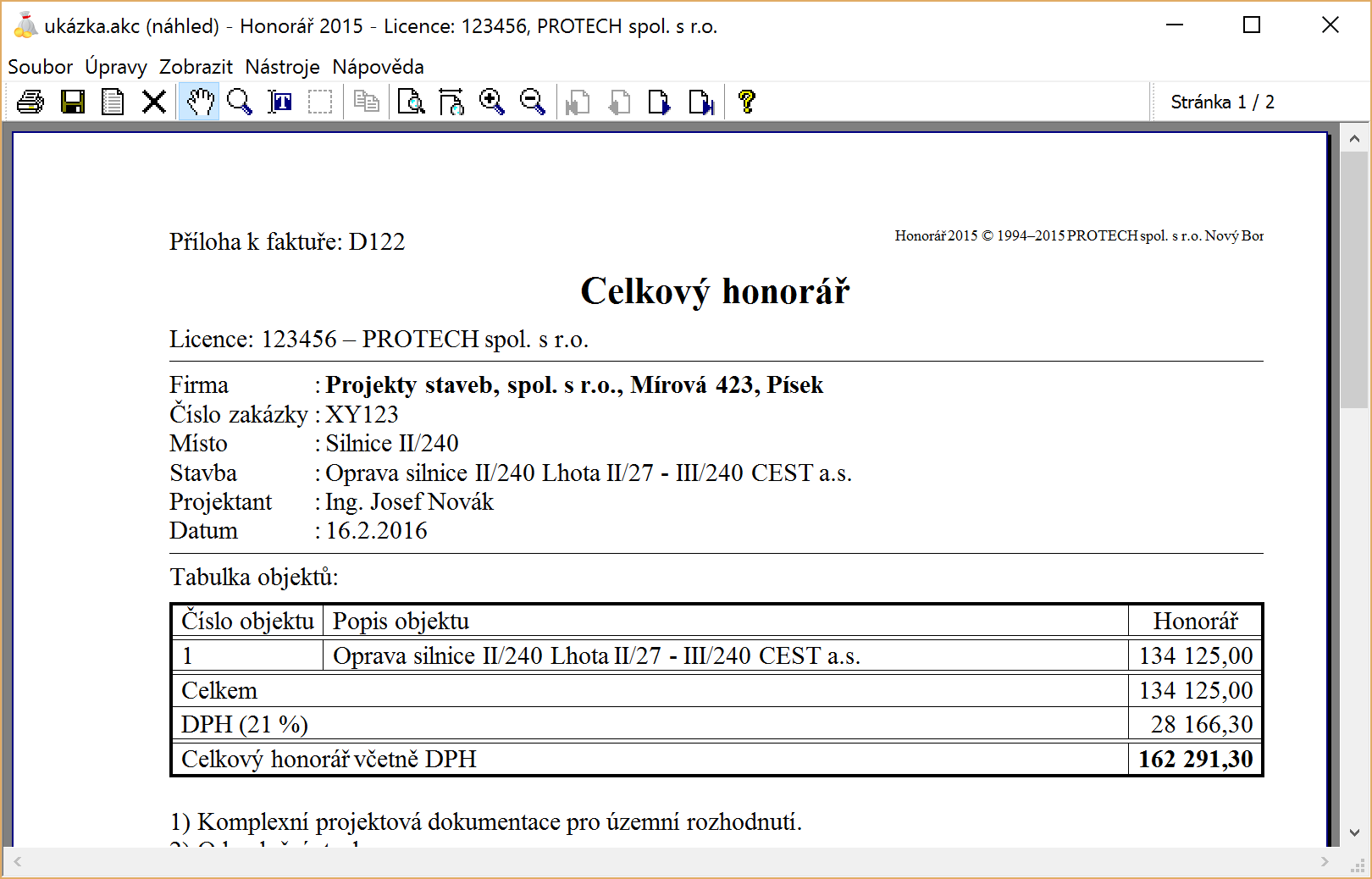 Popsané funkce včetně PDF a RTF exportů si můžete prohlédnout na stránce v části "Ukázky výpočtu", případně zdarma nainstalovat zkušební verzi programu.